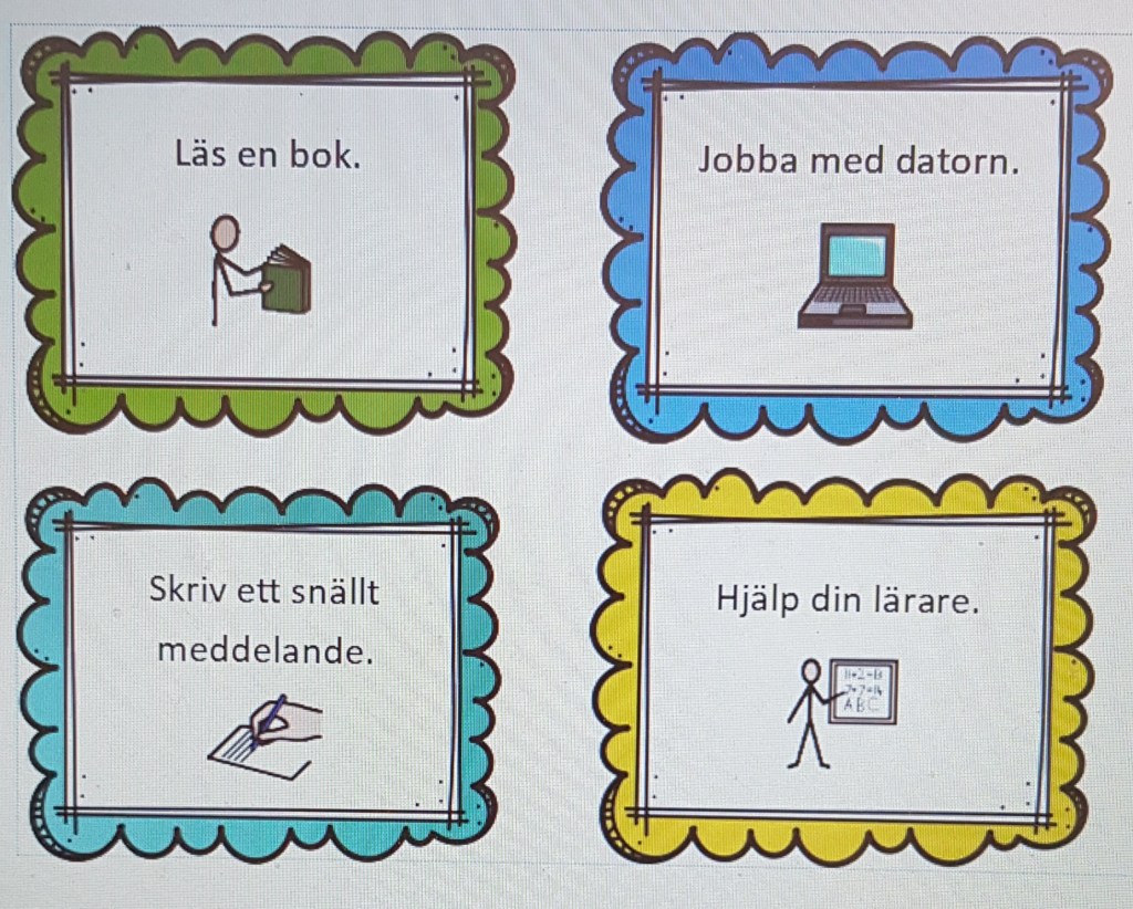 Som lärare får man ofta frågan ”Vad ska jag göra nu?” när eleverna är klara med givna uppgifter för lektionen. För att underlätta inför skolstart och minska antalet av den frågan har jag gjort kort med exempel på vad eleverna kan göra när de är klara.