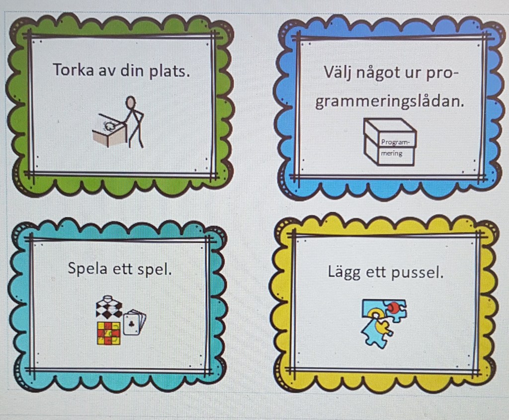 Jag kommer även efter ett tag fråga eleverna vilka förslag de har på vad man kan göra när man är klar och då uppdatera dessa kort. Håll utkik i höst så kommer det säkert fler.