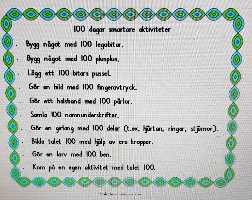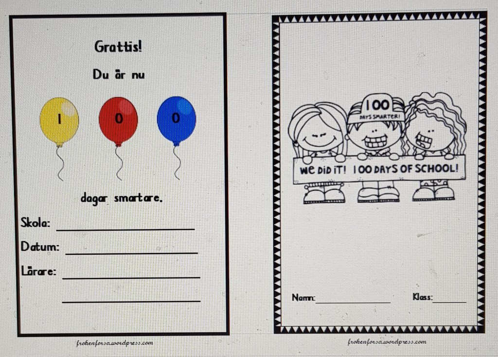 På fredag ska vi fira att vi är 100 dagar smartare. Här kommer därför ett litet häfte som vi ska arbeta i.