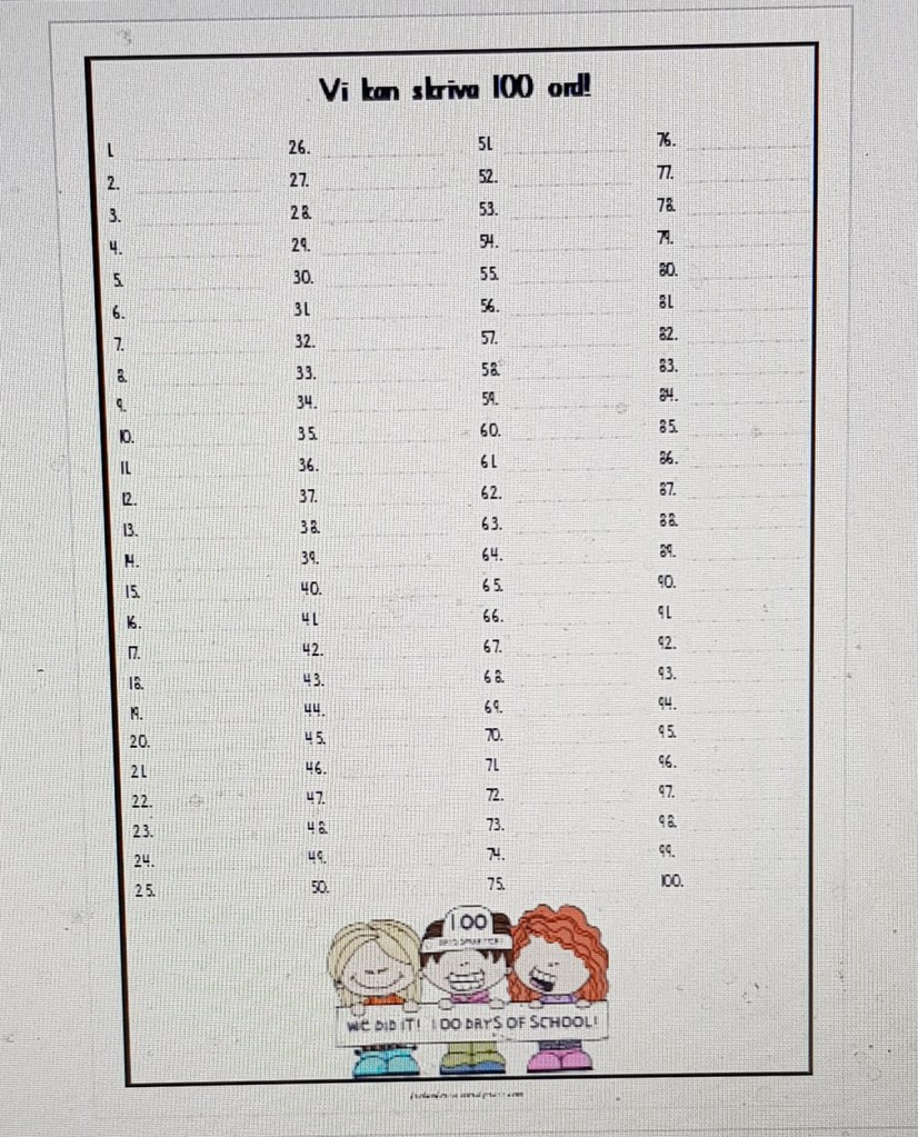 Vi ska även skriva 100 ord tillsammans.