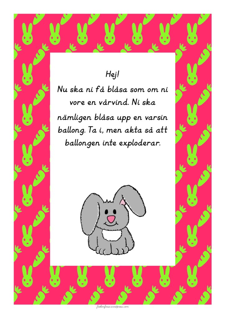 Har satt ihop olika uppdrag från Påskharen som jag nog ska använda som avslutning innan påsklovet. Se bilder för exempel och bifogad fil för hela materialet.