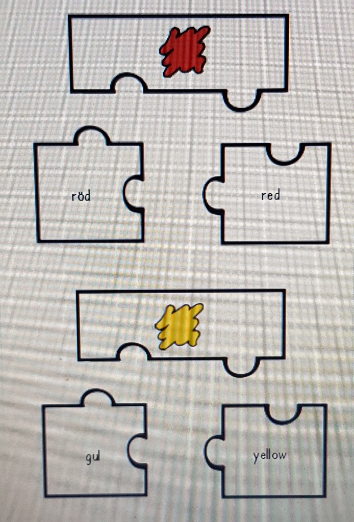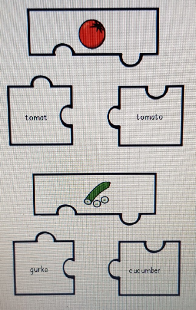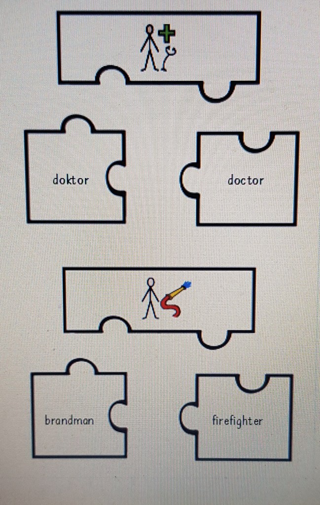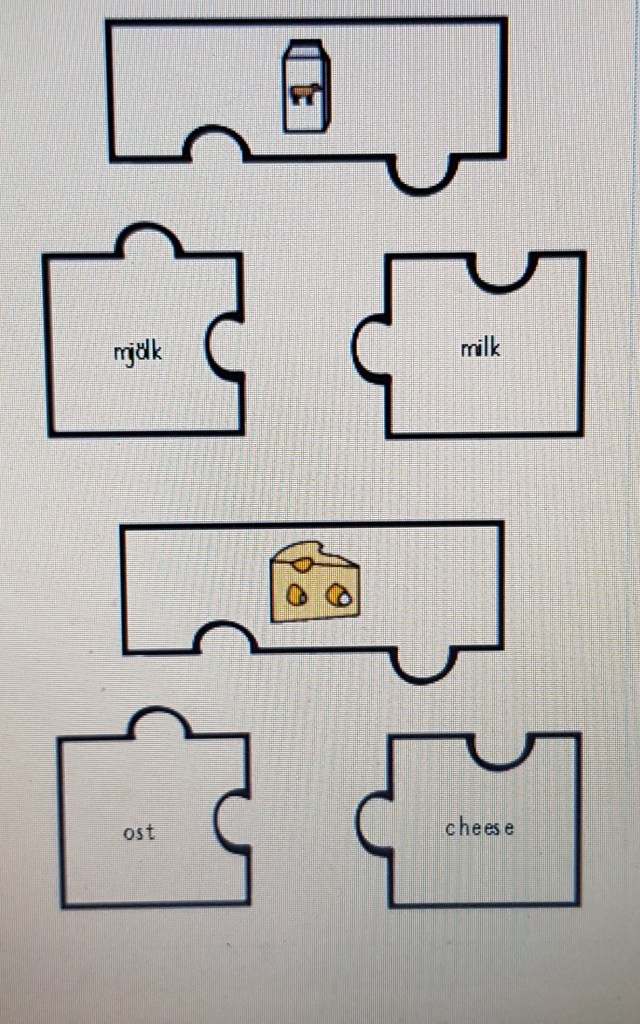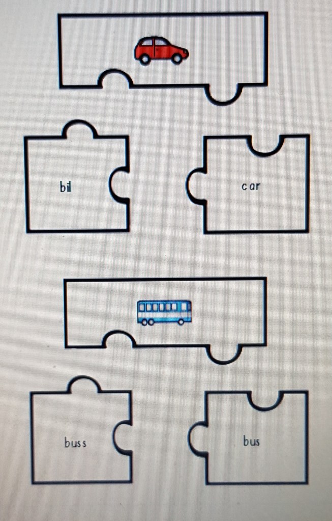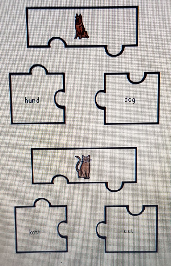 Här kommer det pussel med bilder och orden på svenska och engelska.