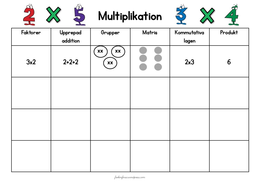 Med inspiration från Pinterest har jag gjort ett arbetsblad för att träna multiplikation. Tänker att jag ska laminera ett varsitt ex till varje elev eller använda clearboards så att de kan använda whiteboard pennor och återanvända arbetsbladet många gånger.