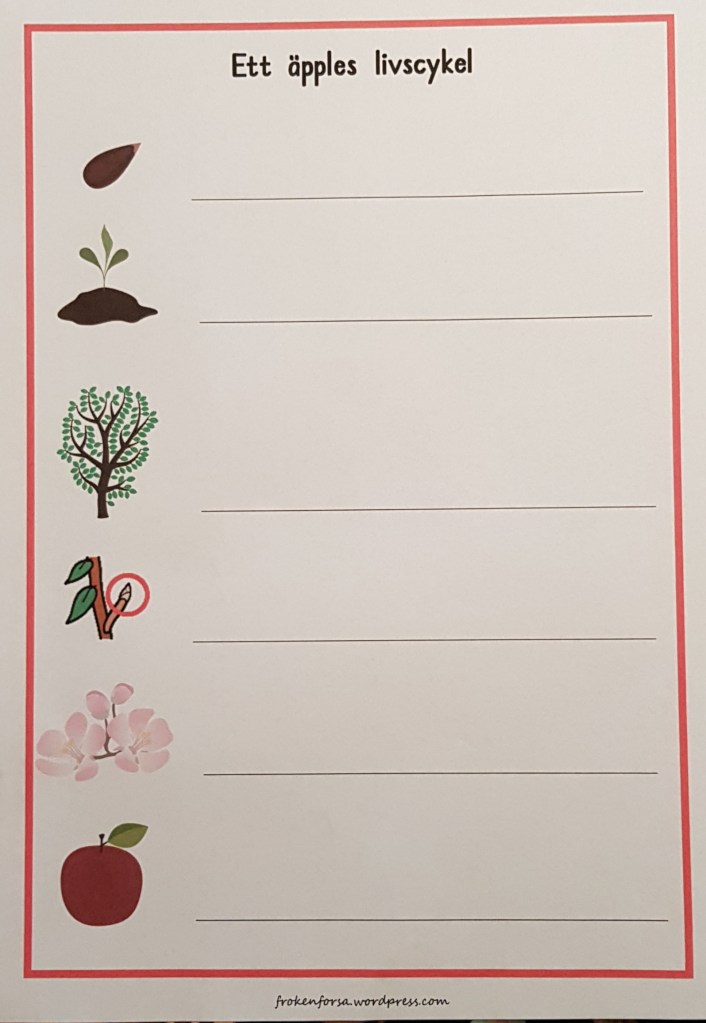 Veckan som kommer ska vi lära oss ett äpples delar och dess livscykel. Därför har jag satt ihop ett material som mina elever ska få arbeta med.