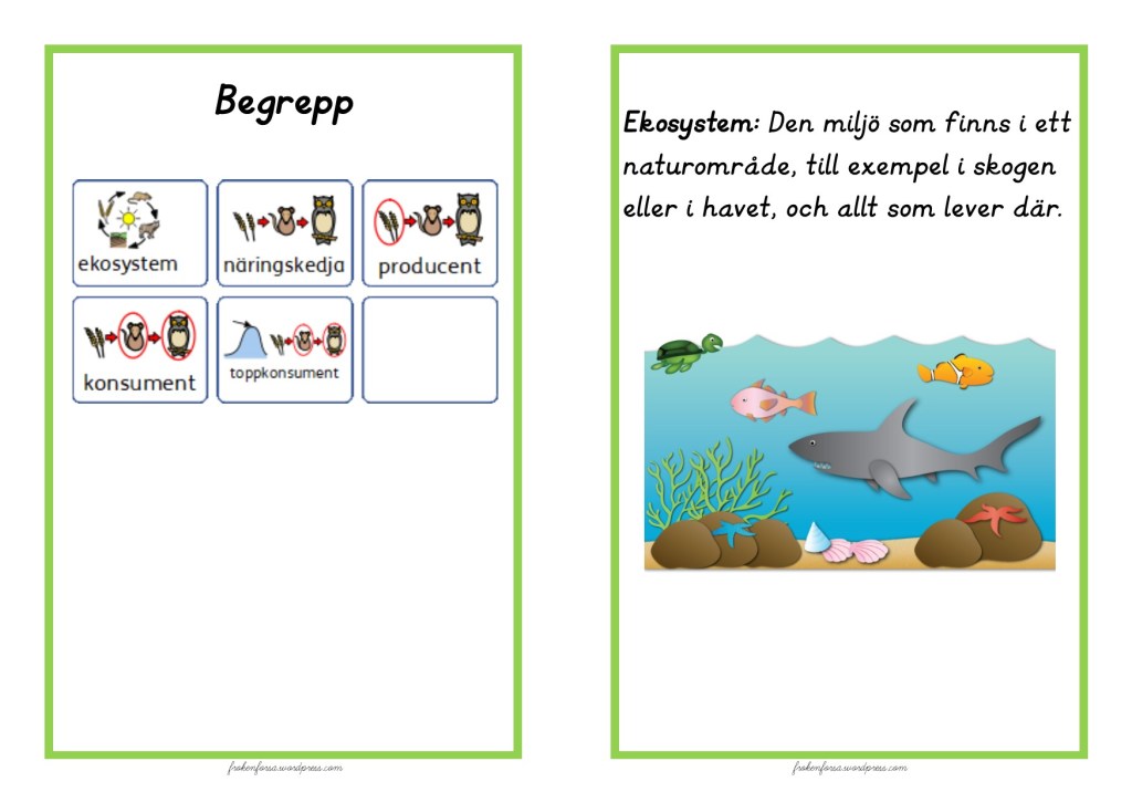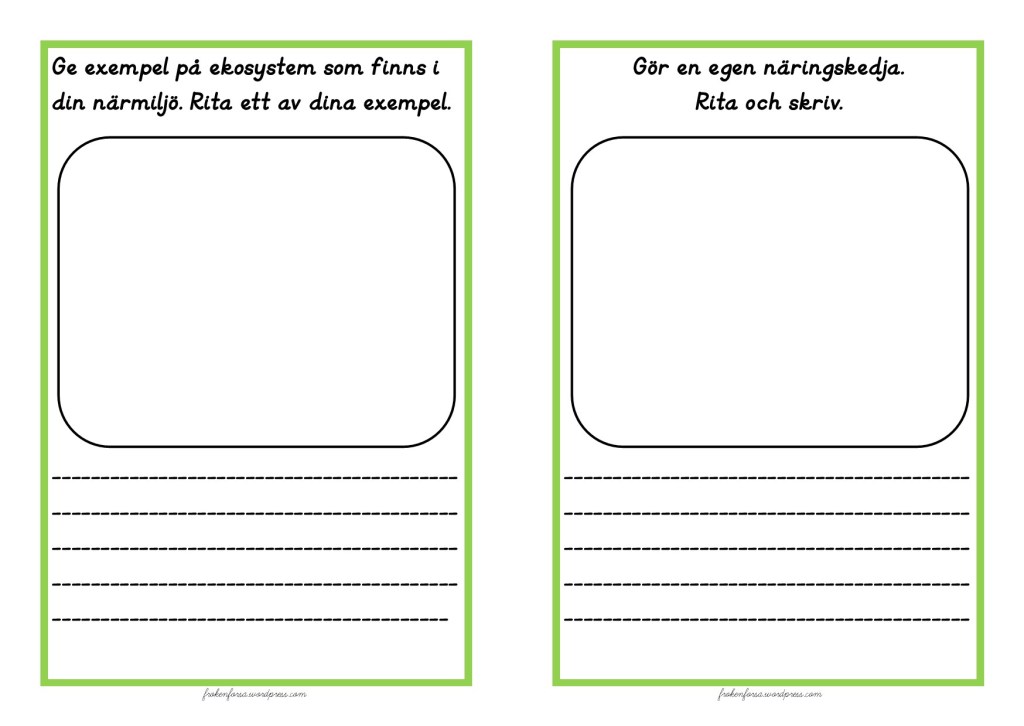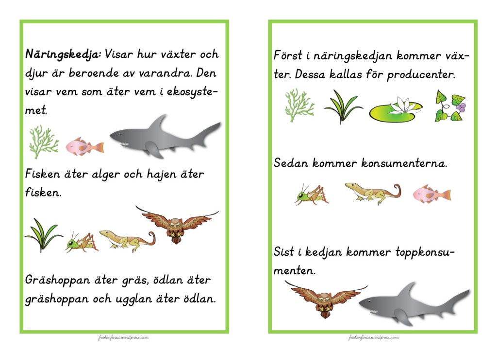 Imorgon är påsklovet slut och det är dags att börja med nya arbetsområden. Ett av dem handlar om näringskedjor. Har satt ihop ett litet häfte som vi ska arbeta med i min åk.1.