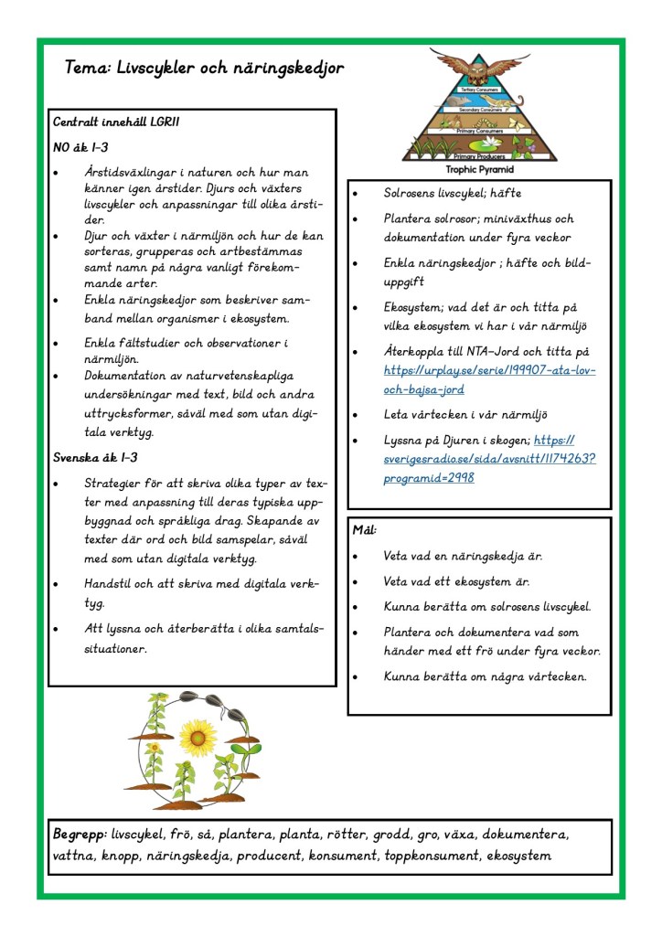 Det är dags för att börja så och vi ska så solrosor och dokumentera vad som händer under fyra veckor. Vi ska dessutom lära oss om solrosens delar och dess livscykel. Så ska vi göra i små miniväxthus som vi sätter på fönstrena i klassrummet. Se bifogad fil.