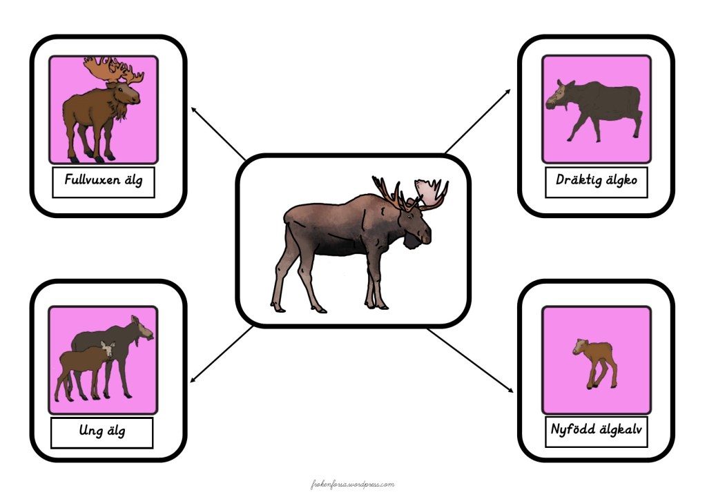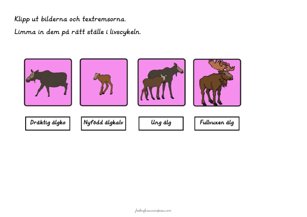 Här kommer ett material för att arbeta med älgens livscykel. Det är både en färdig variant eller en klipp och klistra variant med i materialet.