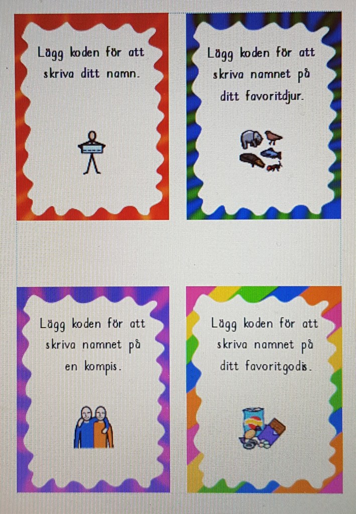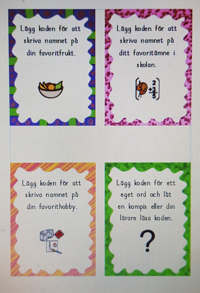 Här kommer en plan med bokstäver och några uppgiftskort för att skriva ord med hjälp av programmering. Kort med fler uppgifter kommer vid tillfälle 🙂