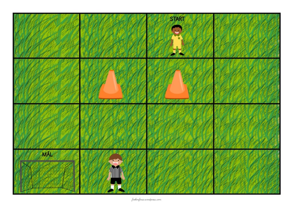 Tre varianter på samma tema. Skriv koden så att fotbollsspelaren tar sig till målet.