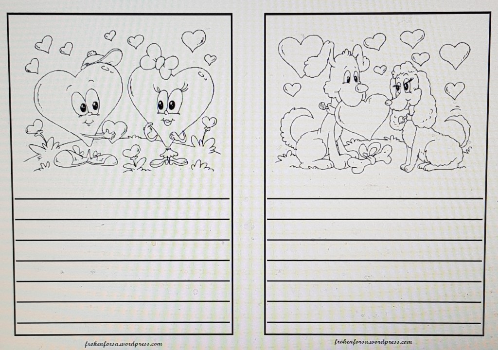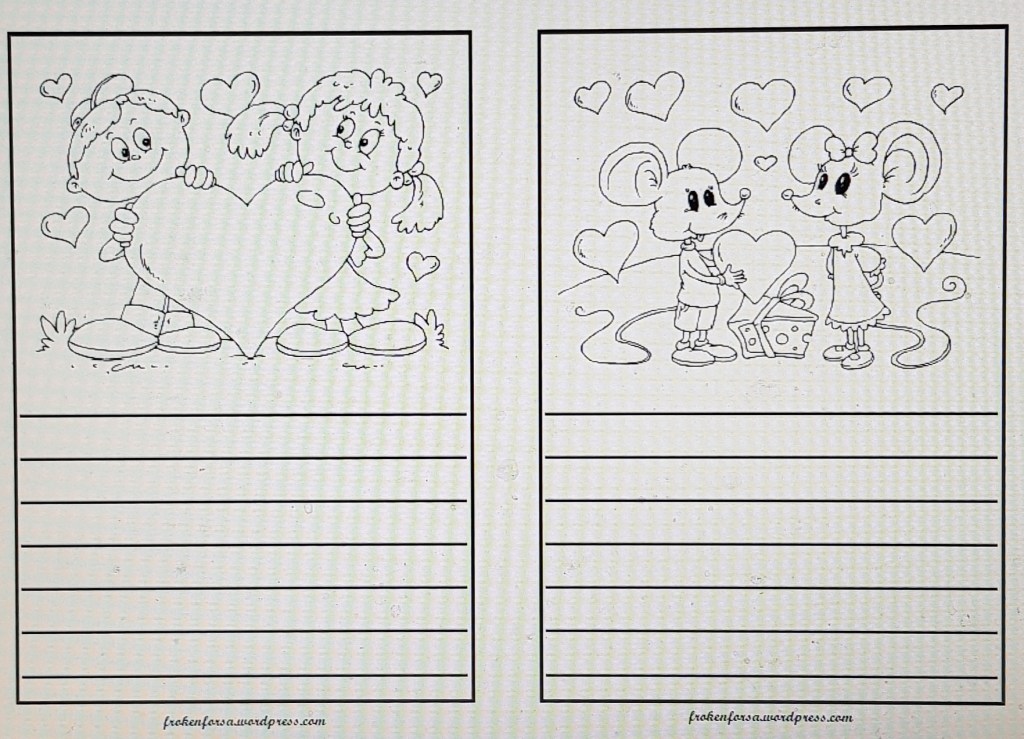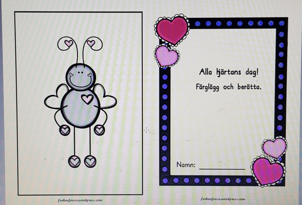Pysslat ihop ännu ett litet häfte på temat alla hjärtans dag. Färglägg bilderna och berätta om dem.