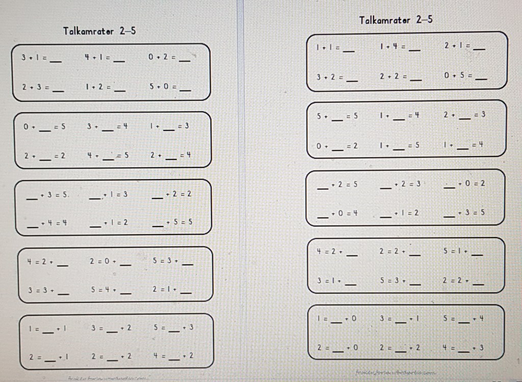 Den här veckan ska mina elever få träna på talkamraterna 1-3 som matematikläxa.